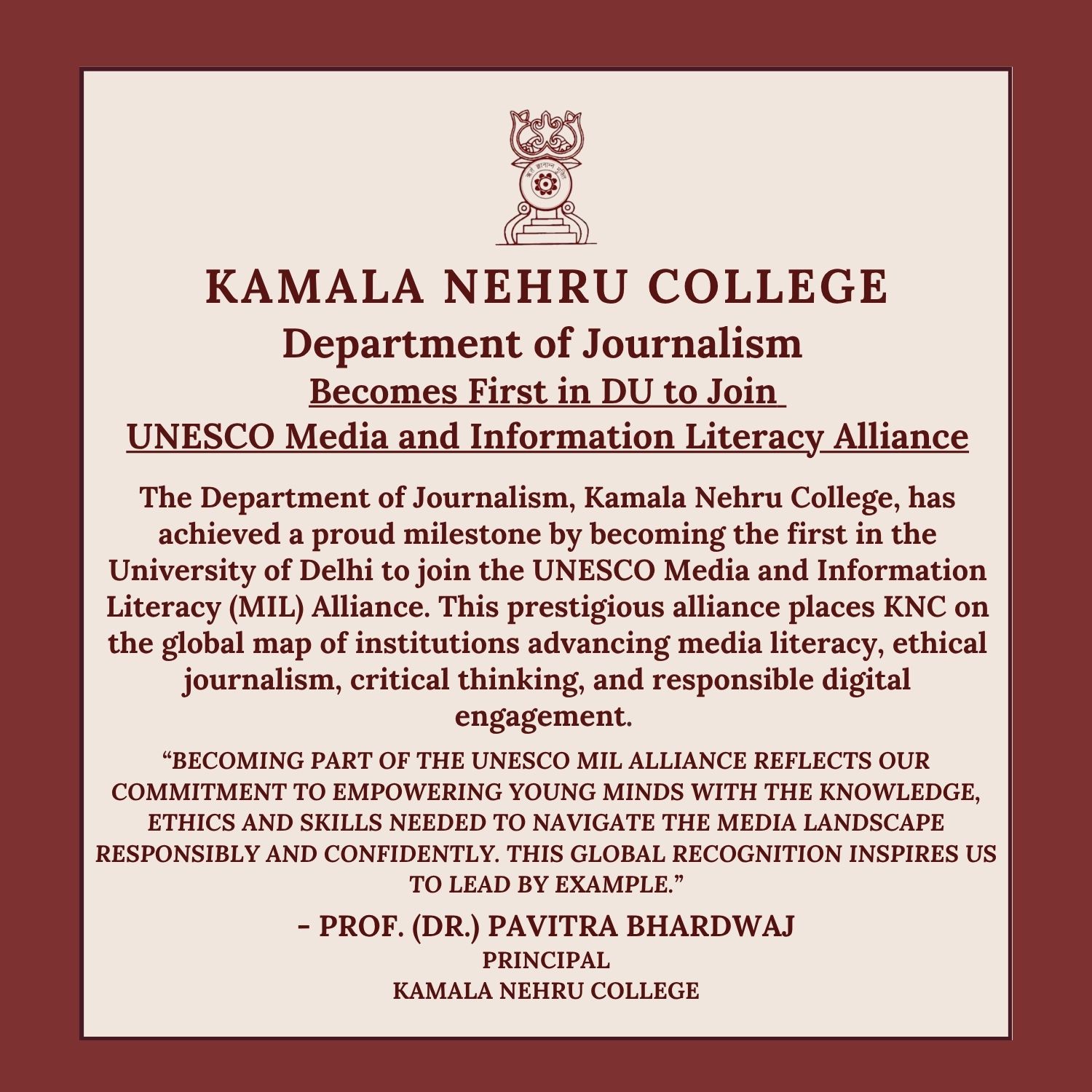 | Department of Journalism joins UNESCO MIL Alliance |