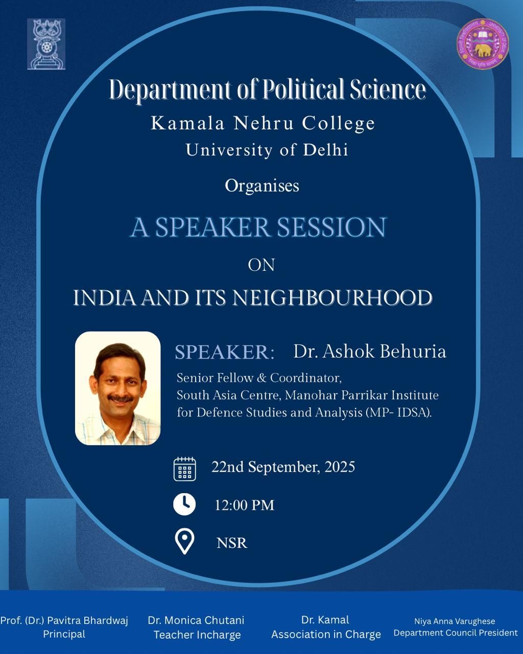 | Political Science Speaker Session – 22 September |